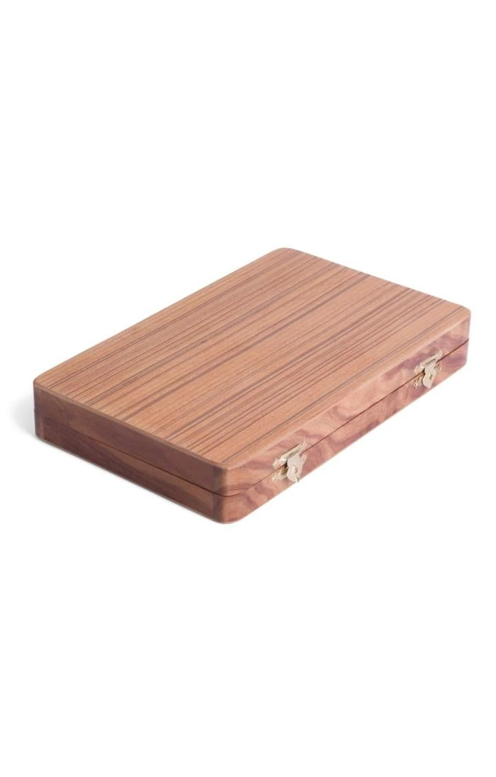 Immerse yourself in the craftsmanship of this 10×6-inch wooden backgammon set, thoughtfully handcrafted from exquisite wood. The addition of soft padded green felt to the hinges not only enhances its appearance but also adds a touch of sophistication to this elegantly simple design. Securely fastened with a pair of golden metal brass clips, this set ensures that your backgammon pieces remain intact and readily available for your next game. Included in this ensemble are a meticulously detailed board, complete sets of backgammon pieces (15 of each colour), four dice and one doubling dice, providing all the essential elements for your gaming enjoyment