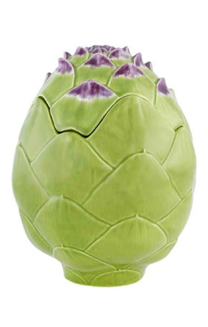 Looking good enough to eat, this delectable earthenware artichoke box is the perfect place to store little odds and ends, sweets or treats. Shaped to resemble the delicious and nutritious plant with textured leaves and hand painted tipping, this is a gloriously imaginative piece that will brighten up any kitchen interior. Ideal for gifting.