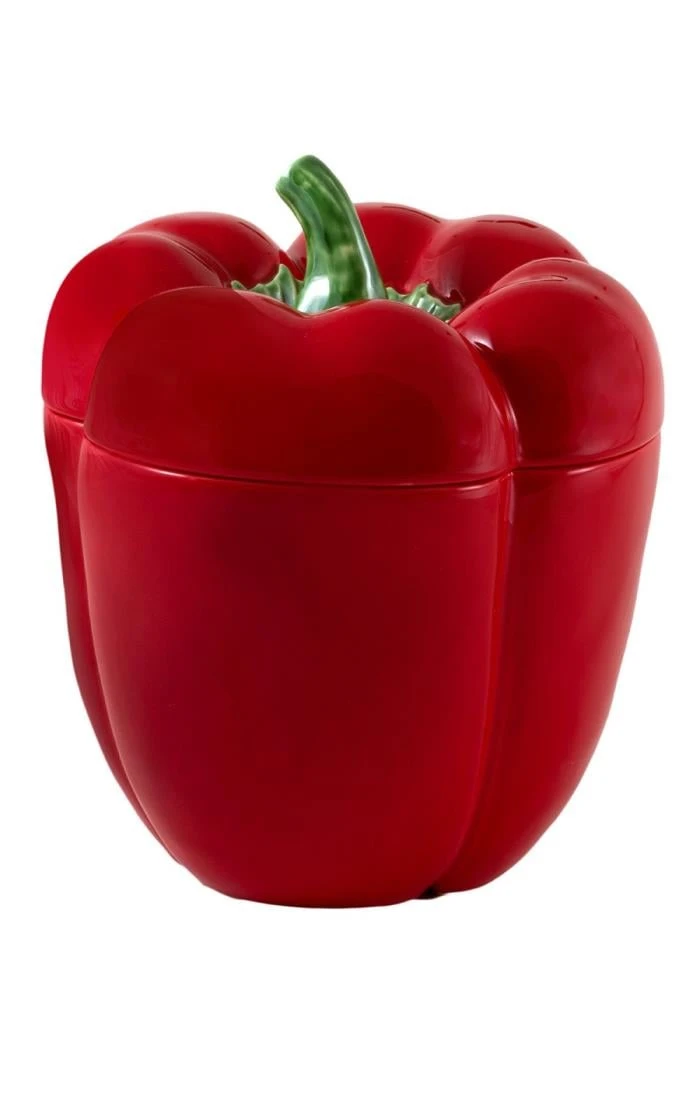 Shaped like a plump red pepper, this hand painted bowl with lid is an ideal kitchen accessory! Co-ordinate or contrast with your colour scheme to add a wash of Mediterranean warmth to any interior. Fill with biscuits, snacks or trinkets and it doubles up as a decorative item and practical storage solution. Ideal for gifting.