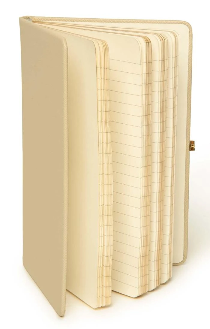 100 pages of lined gold-edged 80gsm cream paper are presented in a tactile faux leather cover in this impeccably styled A5 notebook. The perfect place for doodles, notes and ideas, or even to make a start on that first novel, this special book keeps your secrets safe with a magnetic enamel clasp. Slip it into your handbag or briefcase and it will always be there when inspiration strikes.