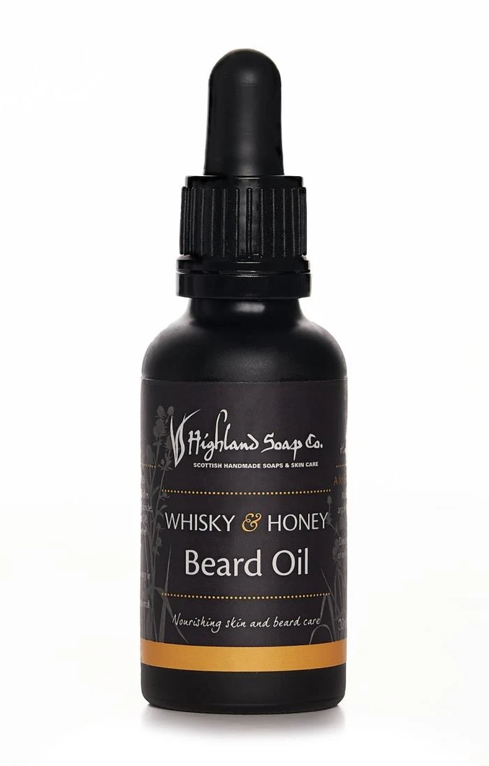 Soften your beard and nourish your skin whilst revelling in scents of fine single malts and sweet Scottish honey with this Whisky and Honey beard oil by The Highland Soap Company. Handmade in the Scottish Highlands from jojoba, sweet almond and argan oil, only a few drops of this silky liquid are needed to feed your beard and lace it with a wonderfully woody and masculine fragrance.