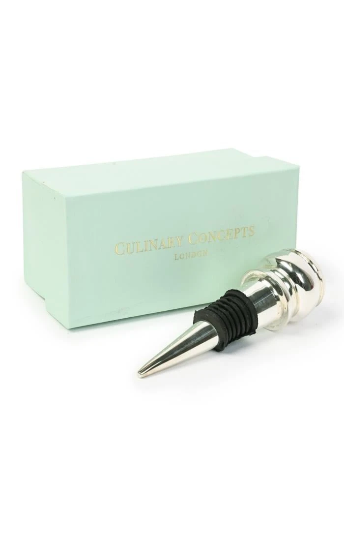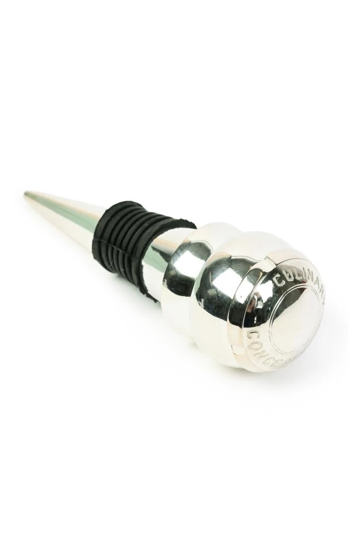 Keep your wine fresh for longer with this attractive and useful silver plated bottle stop from Culinary Concepts. The sleek cone-shaped design allows it to fit most bottles, from your favourite red to a bottle of bubbly, sealing in the flavour and keeping it at its best for longer. The rubber seal is easy to clean when it’s not in use.
