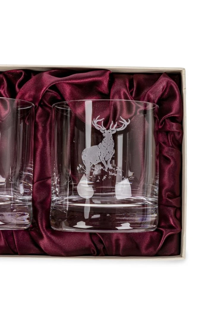 These beautiful Burns Crystal set of 2 10oz whisky glasses are hand engraved with iconic wildlife from the Scottish Highlands and make a beautiful gift.