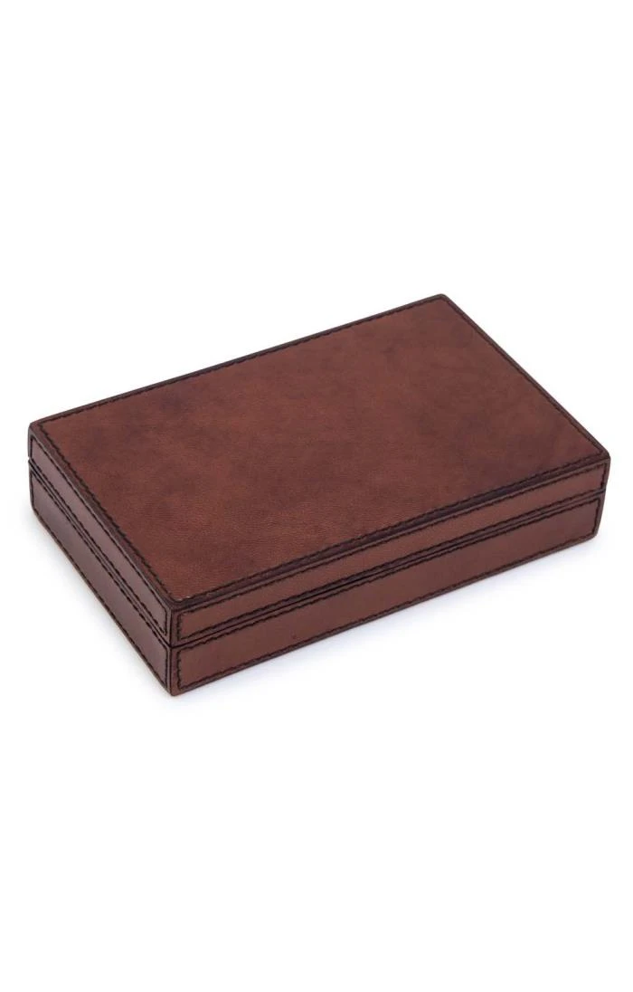 Housed in a sleek premium leather box, this quirky card & dice set would make a great gift for any lover of a big games night in. Lined with super soft faux suede, the box has been crafted with two sections that store the playing cards and dice securely.Â