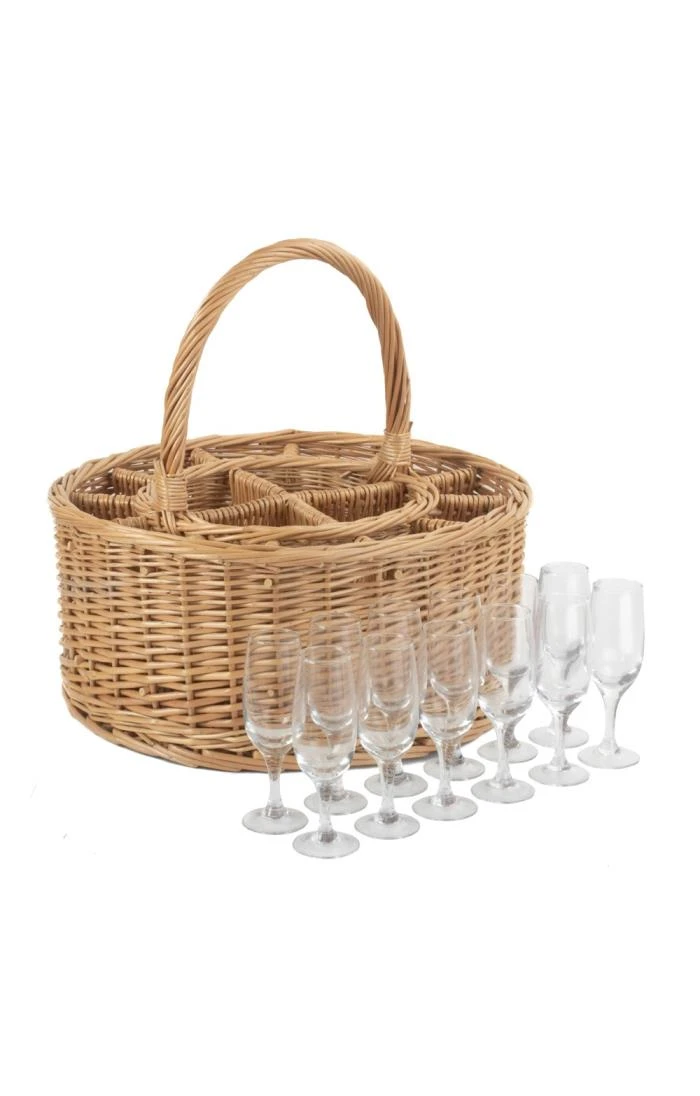 This fabulous wicker entertain basket is just what you need to be the perfect host! Its rounded shape is specially designed for the safe storage of wine glasses, champagne glasses and is a great way of transport delicate glassware without fear of damage. You can store up to four of your favourite wines or champagnes along with a plethora of glasses so that you and your friends can enjoy your favourite tipple when you’re out and about.