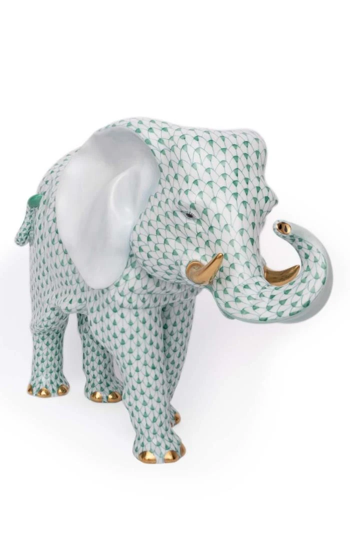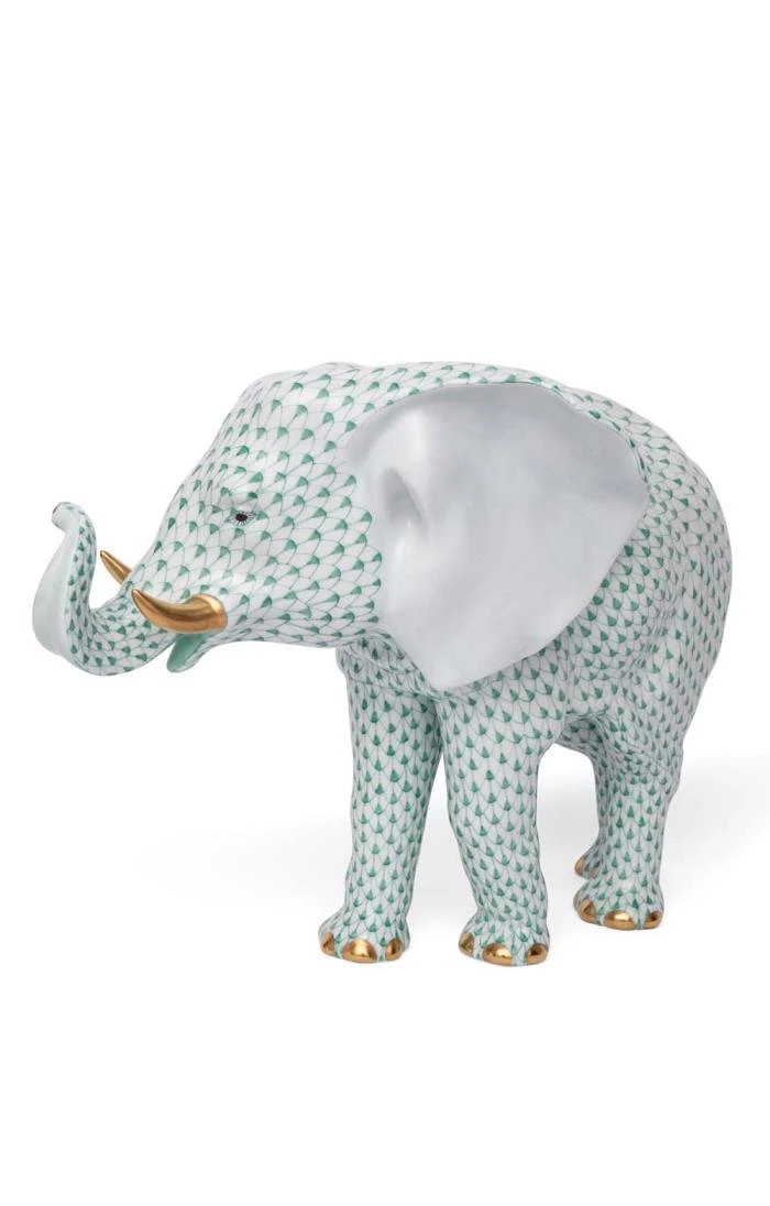 The Herend Baby Elephant is a charming 100% porcelain representation of a young yet already majestic, creature finding its way in the world. Revered as a symbol of wealth and good fortune, every home should have an elephant ornament. With its colourful hand painted fishnet pattern and immaculately depicted lines with glittering golden highlights, this delightful piece would make a wonderful housewarming gift.