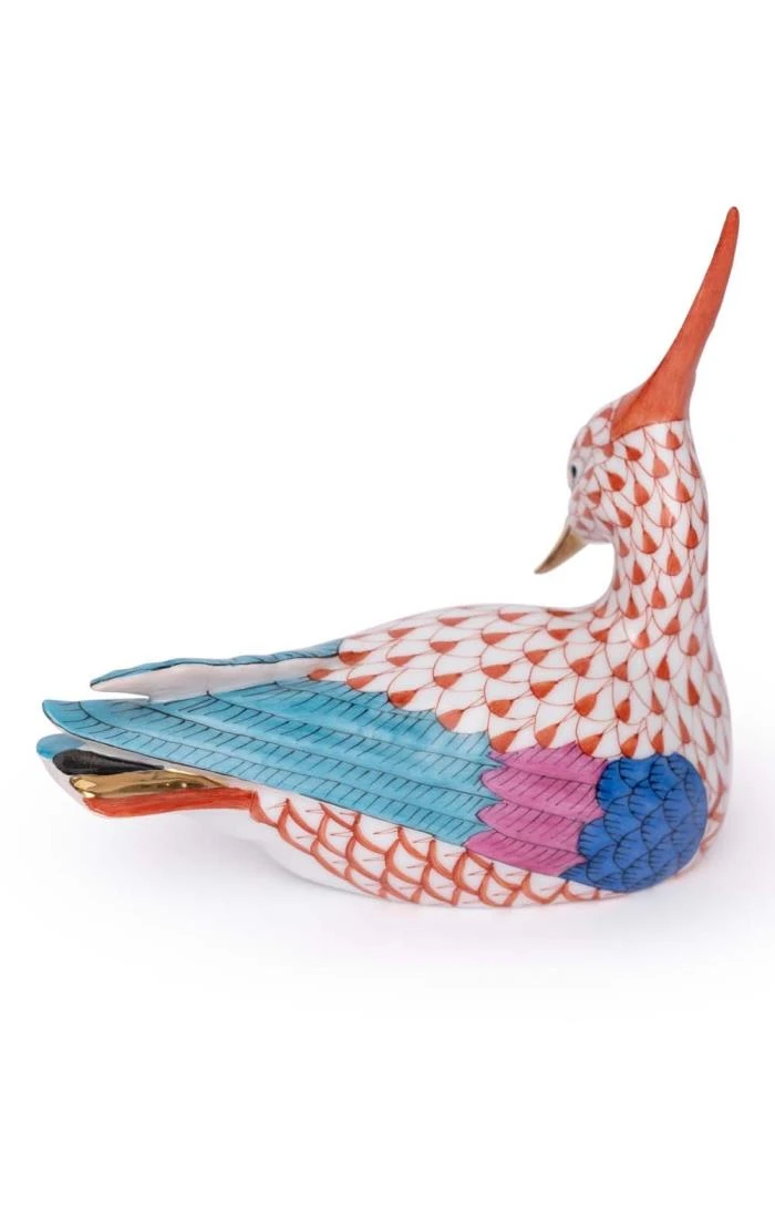 Finely crafted in 100% porcelain, the Herend Peewit figurine is an elegant and colourful depiction of the familiar farmland bird complete with its signature feather crest. Hand painted in Herend’s iconic fishnet pattern, its delicate beak is picked out in gold creating a peaceful and enchanting ornament that will enhance any environment.