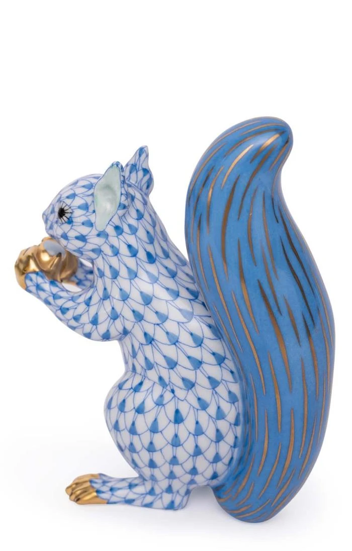 A cheeky woodland character cradles a tasty nut in this charming and colourful Herend Squirrel in fine 100% porcelain. The hand painted fishnet pattern that are characteristic of the brand are used to excellent effect with contrasting designs highlighting the big bushy tail. Its tiny paws and nose are picked out in gold for an end result with enduring appeal. An imaginative gift for any nature lover.