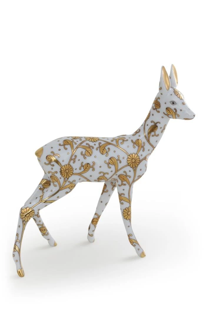 Herend White & Gold Watching Roe