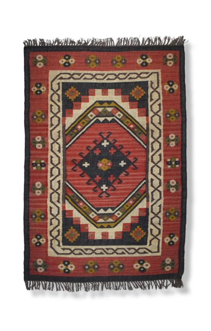 Beautifully crafted from wool and jute, this traditional Indian Killim rug is a beautiful way to give a room a brand new look. Showcasing vibrant colours and a creative, skilful weave that’s synonymous with traditional Indian design, this rectangular rug is carefully finished with tassels on the shorter ends.