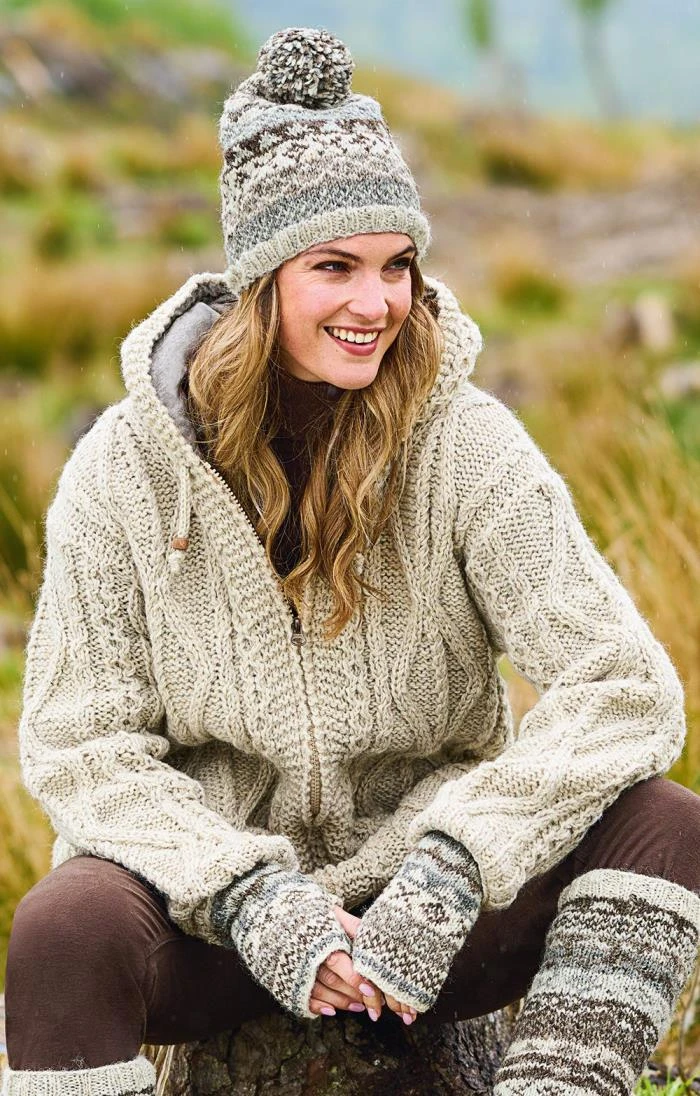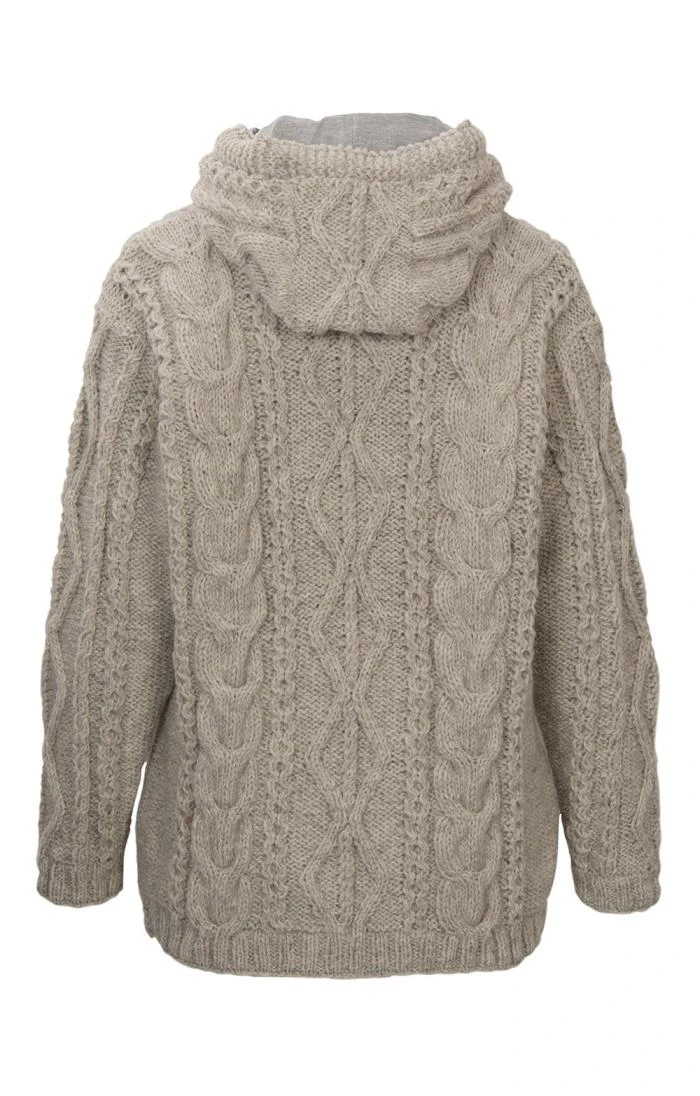 Knitted, pure wool Hoodie guaranteed to keep warm and toasty this winter. Our ladies Aran style wool hoodie comes in variety of colours and will complement any winter look. Cotton jersey lined for comfort and with a cable knit pattern, this is a perfect gift for a loved one or an unusual and indulgent winter treat for yourself.