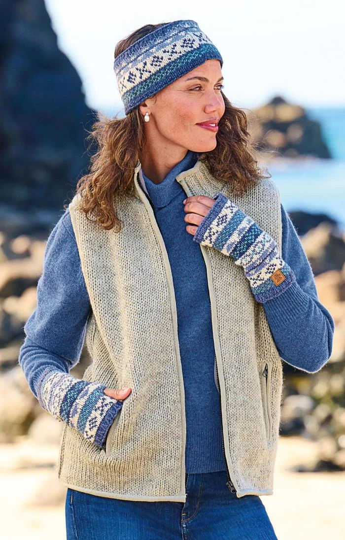 Handmade from 100% pure new wool, this classic bodywarmer is a fashionably chunky knit that s full of character and fun. Wonderfully warm and snug without being bulky or cumbersome, it s the perfect choice for casual outdoorwear as the summer months start to slip away.