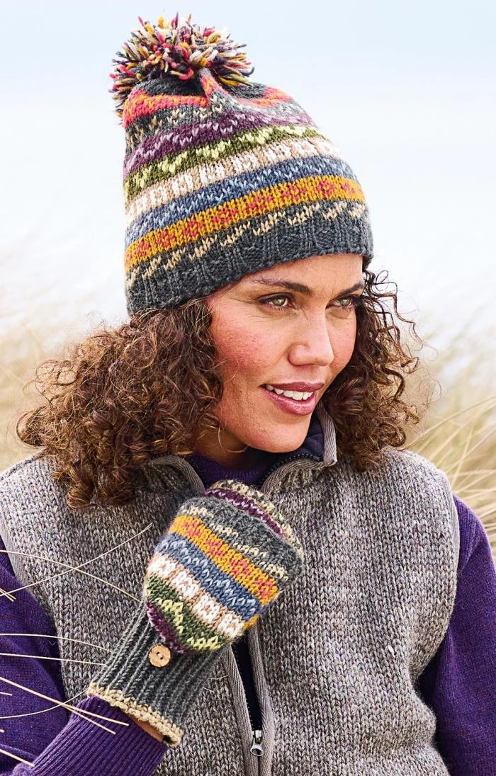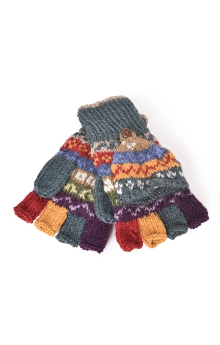 Heat up frozen fingers and keep them warm with these fully lined Elveden mittens in chunky Fairisle patterned 100% wool. Handmade in Nepal in tones reflecting all the vibrancy of this endlessly intriguing country, these cosy and colourful gloves will bring the sunshine whatever the winter weather has in store.