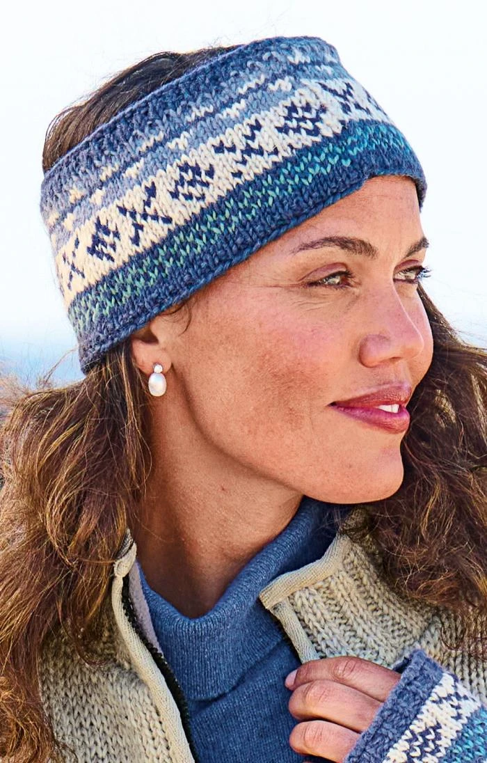 Hand knitted, pure wool headband guaranteed to keep your ears warm and toasty this winter. Our Ladies Finisterre Headband is fleece lined for comfort and adorned with a classic Fairisle-style pattern knit. A perfect gift for a loved one or a wonderfully indulgent winter treat for yourself.