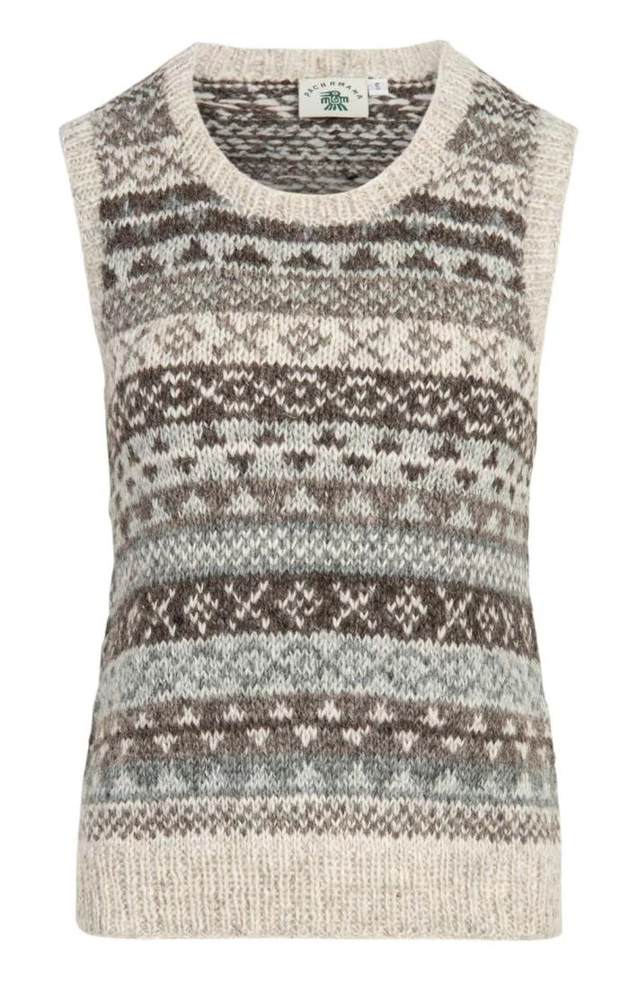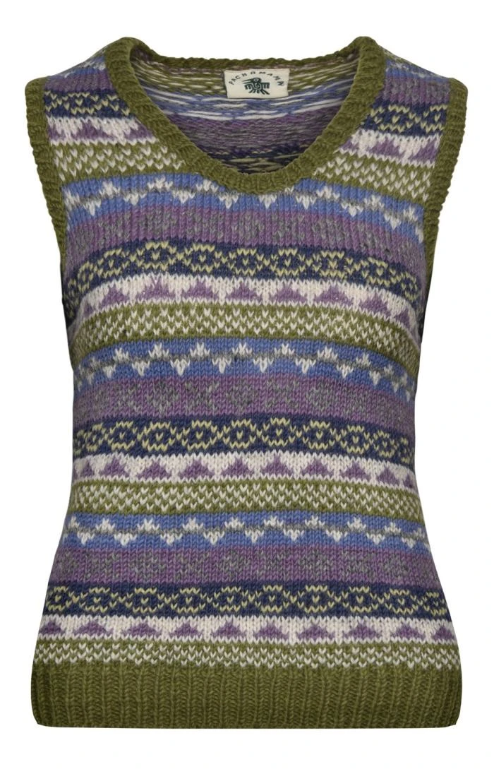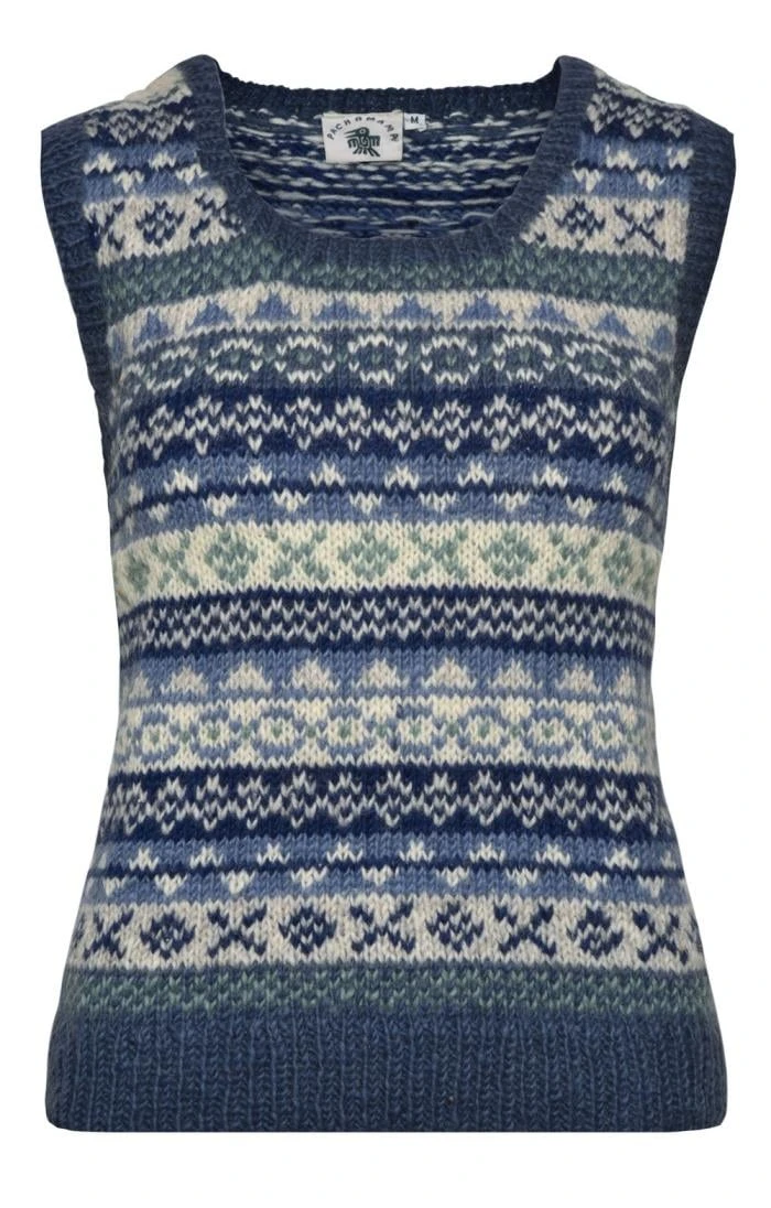 The perfect mid-season woolly, this round-necked Finisterre tank top in light 100% wool is a fresh and fashionable take on the classic Fairisle design. Layer over a casual shirt or a long sleeved T-shirt for a splash of warmth and colour that will have you covered as winter winds start to bite. A Fair Trade product hand knitted in Nepal.