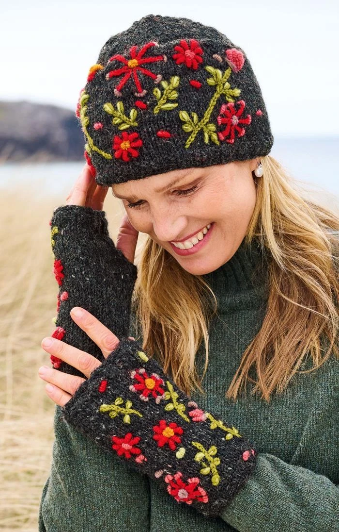 With their hand embroidered flower patterns and rustic chunky knit, the 100% wool Lugano handwarmers are infused with the spirit of their artisanal roots. Hand knitted in Nepal in colours inspired by the vibrant country and its mountain communities, the cosy fleece lining feels wonderfully soft against the skin and provides an additional layer of warmth to see you snugly through the chilly months.
