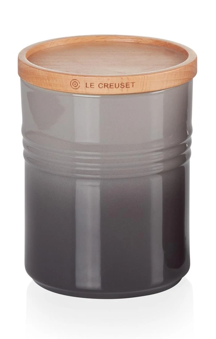 An impressive blend of form and function, this glazed stoneware medium storage jar by Le Creuset is the stylish way to keep key ingredients fresh in the kitchen. With its sleek silhouette and hallmark three-ring Le Creuset design, this covetable container from the celebrated French kitchenware company will add an element of continental chic to every shelf or cupboard.