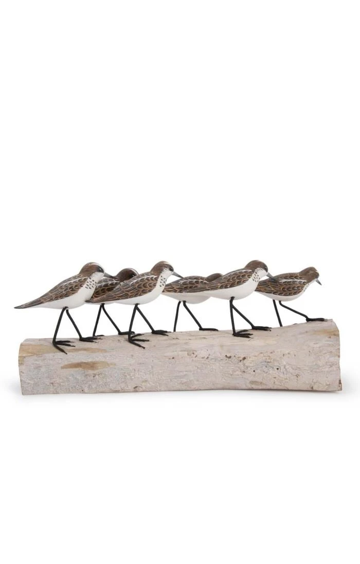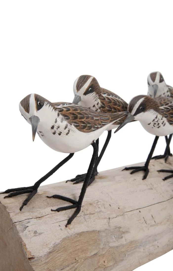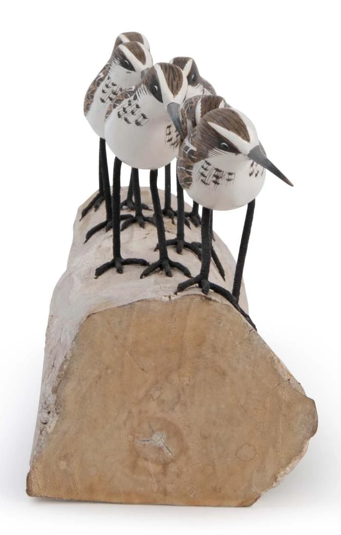 Beautifully detailed and meticulously crafted, this little stint block bird carving makes a unique and wonderful gift. Mounted on aged driftwood, these little stints (a tiny wading bird with a short and fine black bill) are designed in the UK and hand painted from sustainable wood sources offering authenticity and individual character to each piece.