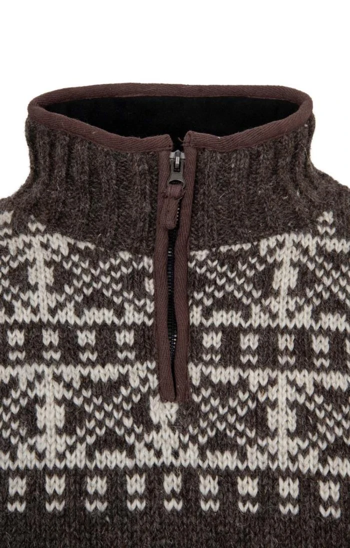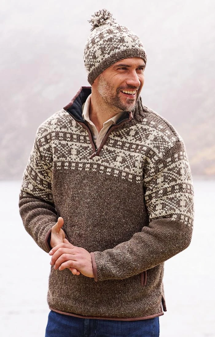 Hand knitted by highly skilled artisans, the New England half zip has been constructed from chunky wool for a comfortable and cosy feel. A full fleece lining and funnel neck design guarantee warmth throughout the colder months while the timeless Fair Isle style pattern and the oversized fit combine to create a stylish option that is perfect for casual occasions.