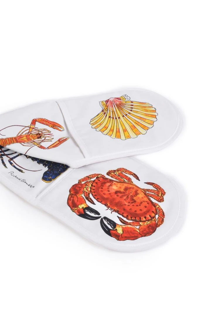 Stay safe with these beautifully designed double oven gloves from British artist Richard Bramble. Crafted from premium linen and cotton towelling with a preventative steam barrier to keep your hands away from the heat, these handy gloves are both functional and attractive.