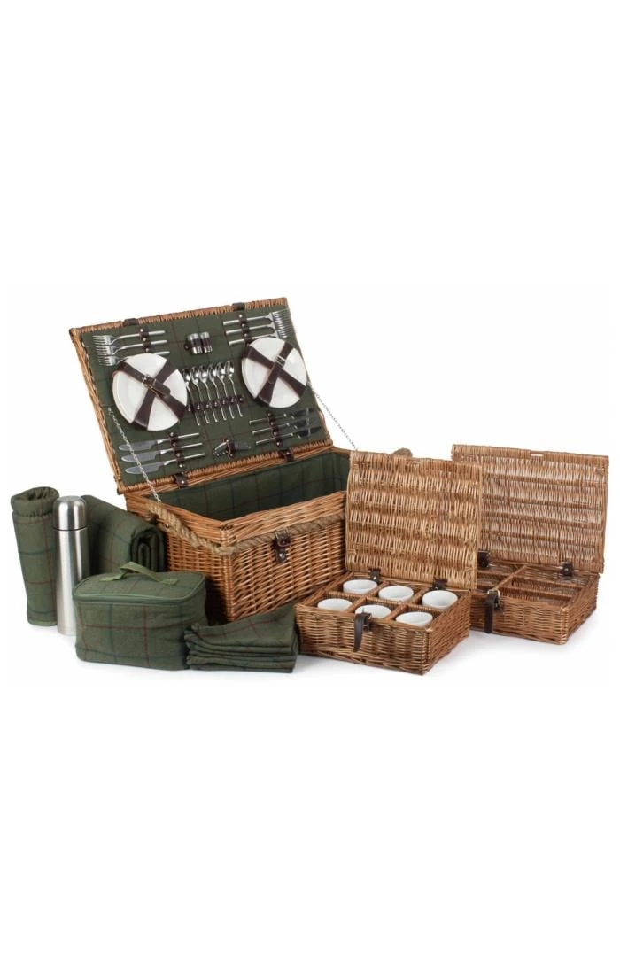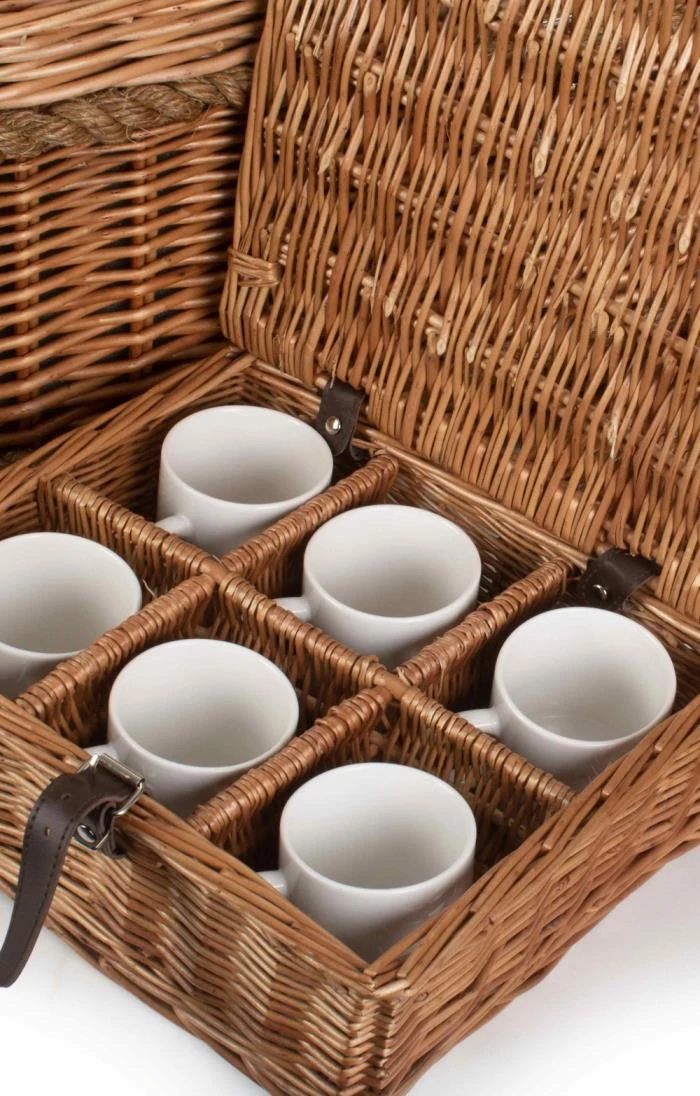 This impressive rope handle picnic hamper contains everything you need for the perfect six-person brunch, from full size porcelain plates, china cups and full cutlery set to genuine wine glasses and 750ml flask. It even contains a handy bottle opener, salt and pepper shaker and a cooler coat for your wine. All you need to bring are some friends and the food!