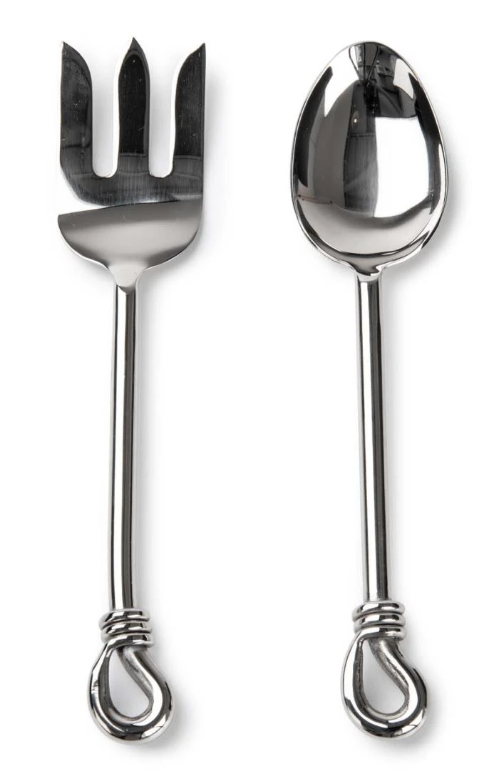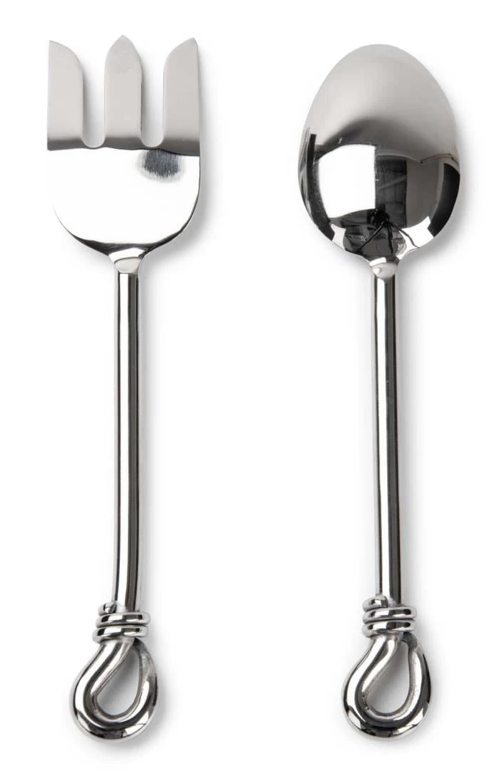 These simple yet elegant salad servers are perfect as a unique gift for the good cook in your life. Finished to a high shine, this set consists of a fork and spoon, elegantly embellished with an intricate knot motif at the end of each handle.