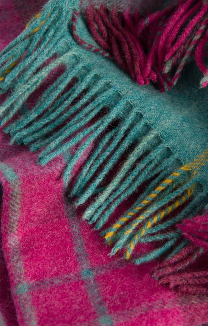 Made in warm and cosy lambswool by Bronte in Yorkshire, our Shetland Saltburn checked throw brings a soft pastel glow to any living space. Generously sized and accented with an expressive fringe, this unique throw makes an elegant gift for anyone with a love for and keen appreciation of quality textiles.