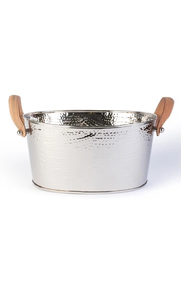 Give drinks parties and intimate gatherings an air of importance and a sparkle of sophistication with this small champagne bath in gleaming silver plate by Culinary Concepts. Evoking five-star stays in luxury hotels with its vintage styling and hammered surface texture, fill with ice and nestle one or two bottles inside for elegant occasions that bubble with good taste and great company.