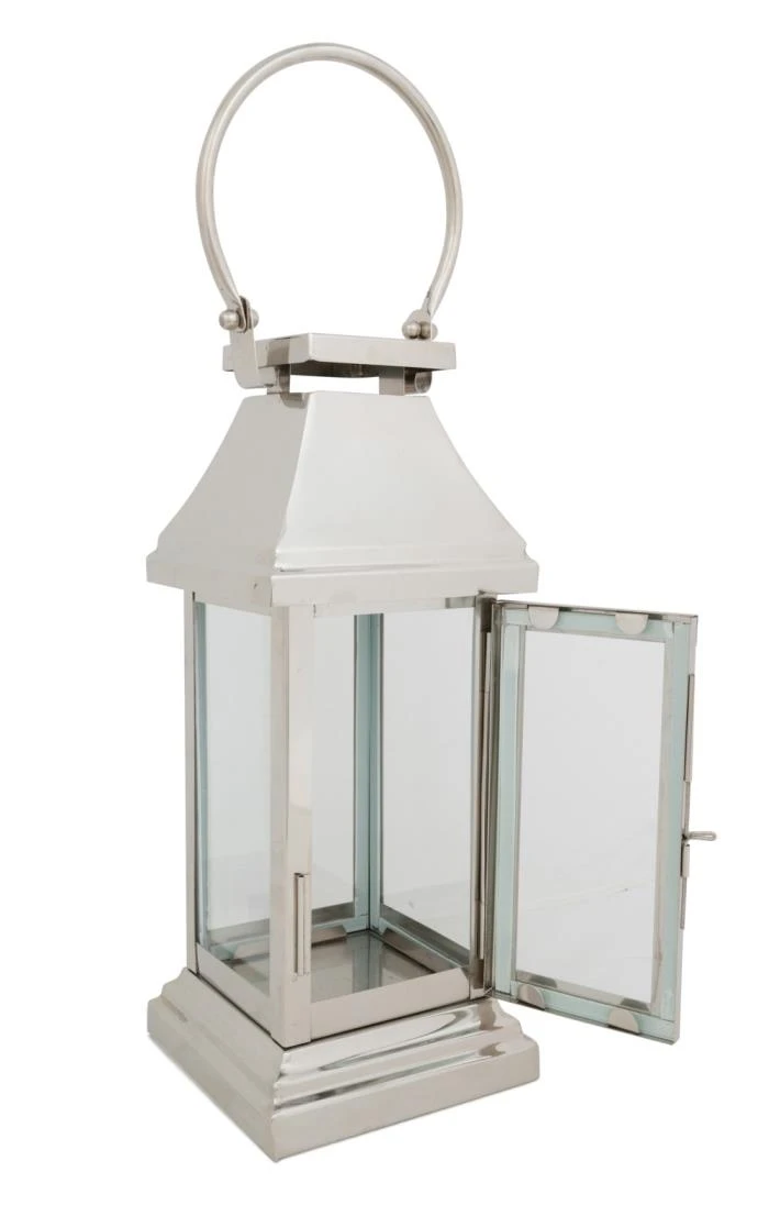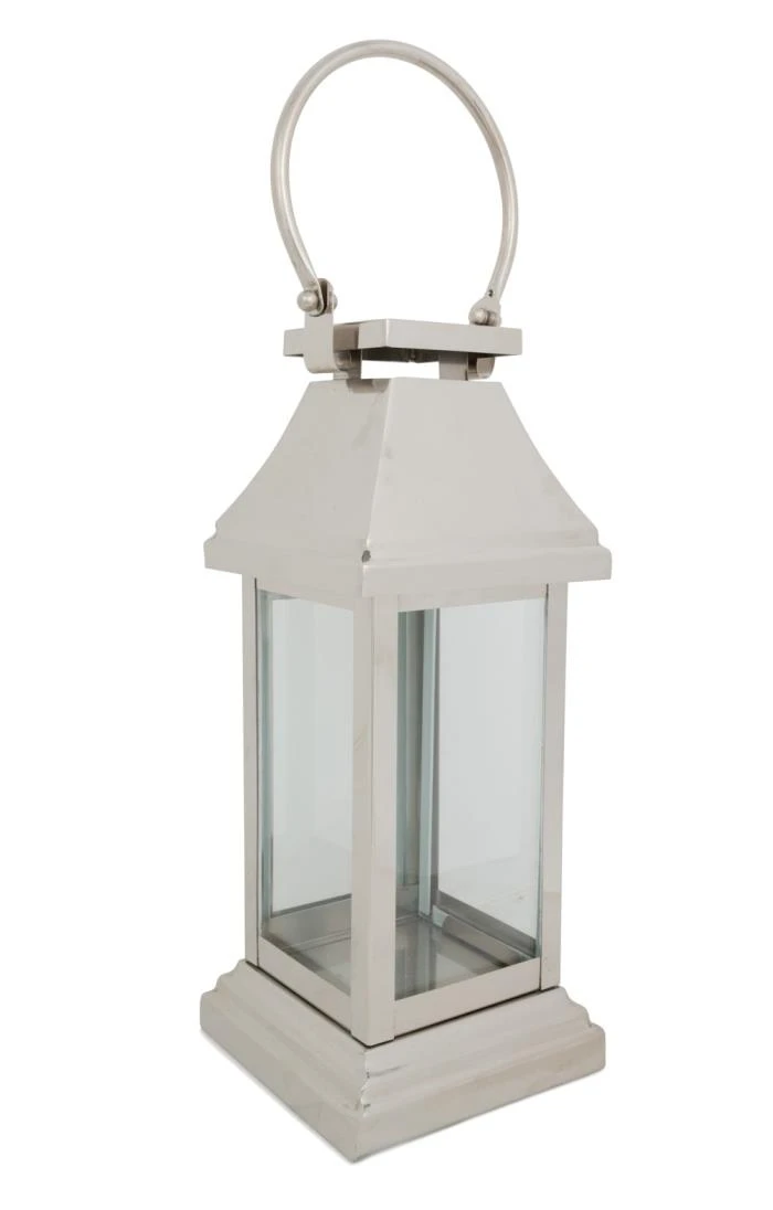 Sleek and stylish, this contemporary stainless steel and nickel plated station lantern illuminates your favourite outdoor space with flickering candlelight. The tall design means there’s plenty of room for long-lasting pillar candles, and an integrated carry candle in the same metal finish makes it nicely portable.