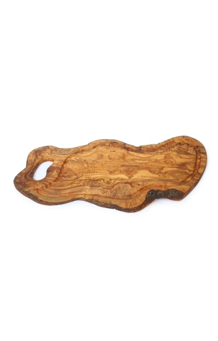 Add rustic charm to your kitchen with this unique, handmade wooden cutting board, carved from beautiful olive wood with a beautiful natural finish. Crafted from a single piece of wood ensuring no two cutting boards are the same, this beautiful eco-friendly board has its own handle and a groove designed to catch juices and keep your countertop clean.